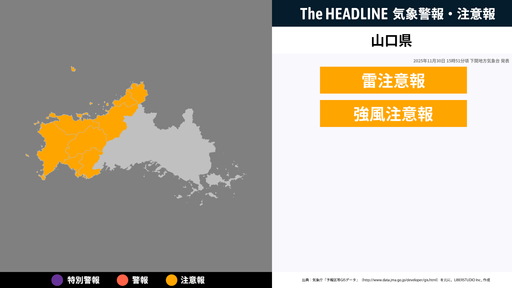 山口県、落雷と突風に関する気象情報が更新