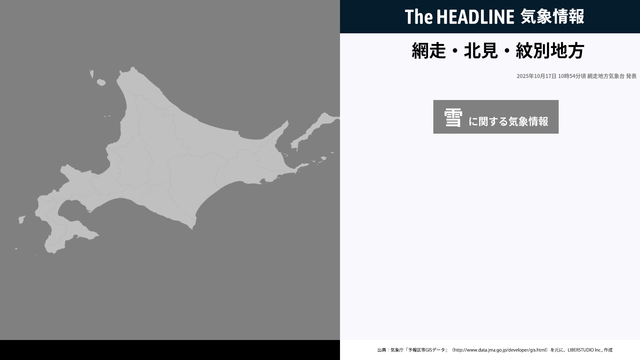 10月17日10時54分、網走地方気象台は、警報・注意報に先立ち注意・警戒を呼びかけるため網走・北見・紋別地方に雪に関する気象情報を発表した。