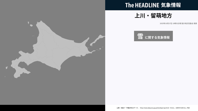 10月17日10時52分、旭川地方気象台は、警報・注意報に先立ち注意・警戒を呼びかけるため上川・留萌地方に雪に関する気象情報を発表した。