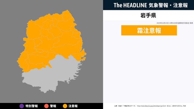 10月19日10時18分頃、岩手県に霜注意報が発表