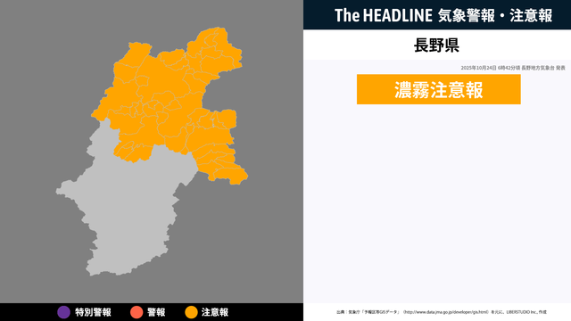 10月24日6時42分、長野地方気象台より長野県に濃霧注意報が発表された。