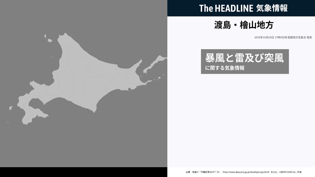 渡島・檜山地方、暴風と雷及び突風に関する気象情報が更新
