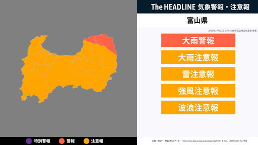 富山県、雷と突風及び降ひょうに関する気象情報が発表