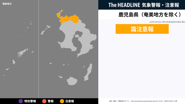 10月28日10時5分頃、鹿児島県(奄美地方除く)に霜注意報が発表