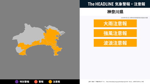 11月1日5時44分、横浜地方気象台は、神奈川県に発表されている警報・注意報の経過、予測、防災上の留意点などを解説するために発表していた気象情報を更新した。