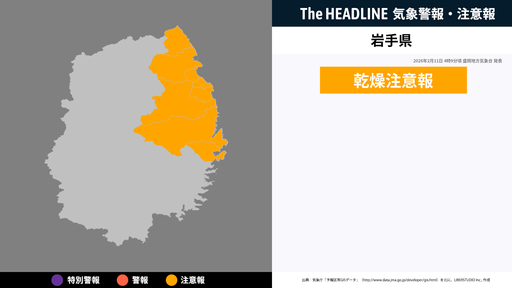 11月1日16時43分、盛岡地方気象台は、岩手県に発表されている警報・注意報の経過、予測、防災上の留意点などを解説するために発表していた気象情報を更新した。