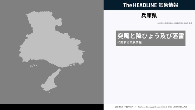 11月3日5時20分、神戸地方気象台は、兵庫県に発表されている警報・注意報の経過、予測、防災上の留意点などを解説するために発表していた気象情報を更新した。