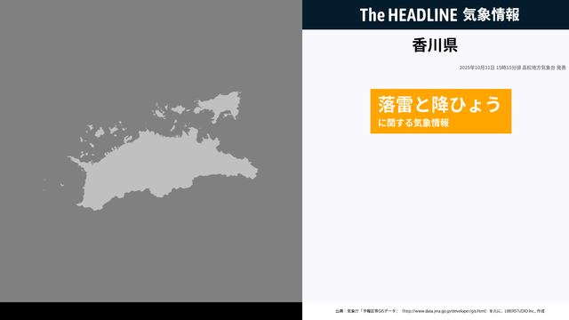 10月31日15時15分、高松地方気象台は、警報・注意報に先立ち注意・警戒を呼びかけるため香川県に落雷と降ひょうに関する気象情報を発表した。