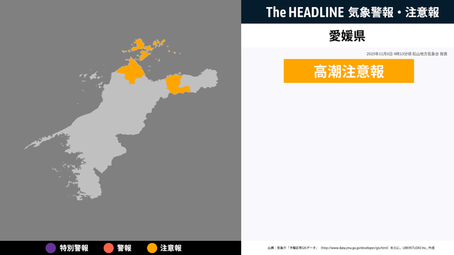 11月6日4時13分頃、愛媛県に高潮注意報が発表