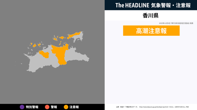 11月9日7時7分頃、香川県に高潮注意報が発表