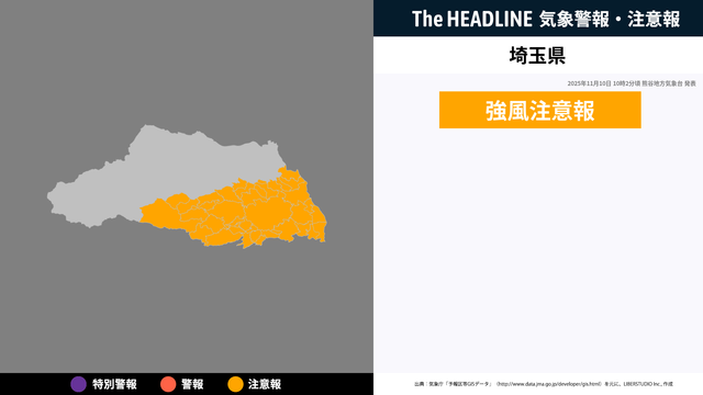 11月10日10時2分、熊谷地方気象台より埼玉県に強風注意報が発表された。