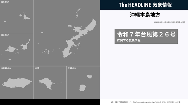 これで「令和7年台風第26号に関する沖縄本島地方気象情報」は終了しますが、今後は13日17時頃に発表予定の「大雨と高波及び強風に関する沖縄本島地方気象情報」を参照してください。