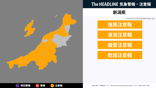 11月17日5時8分、新潟地方気象台は、新潟県に発表されている警報・注意報の経過、予測、防災上の留意点などを解説するために発表していた気象情報を更新した。