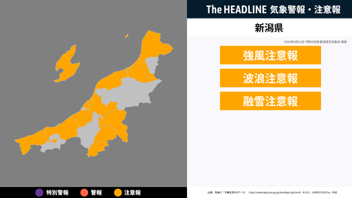 11月26日5時33分、新潟地方気象台は、新潟県に発表されている警報・注意報の経過、予測、防災上の留意点などを解説するために発表していた気象情報を更新した。