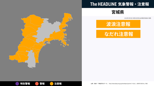 宮城県、大雨に関する気象情報が発表