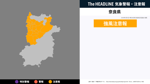 11月27日16時5分、奈良地方気象台は、奈良県に発表されている警報・注意報の経過、予測、防災上の留意点などを解説するために発表していた気象情報を更新した。