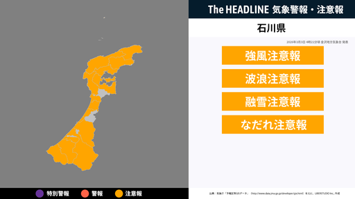 11月28日5時32分、金沢地方気象台は、石川県に発表されている警報・注意報の経過、予測、防災上の留意点などを解説するために発表していた気象情報を更新した。