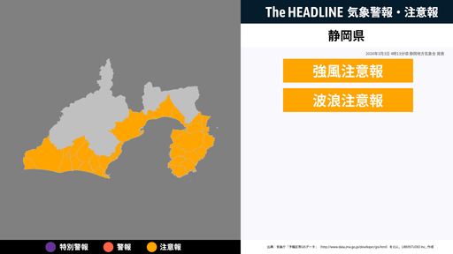 11月27日16時18分、静岡地方気象台は、静岡県に発表されている警報・注意報の経過、予測、防災上の留意点などを解説するために発表していた気象情報を更新した。
