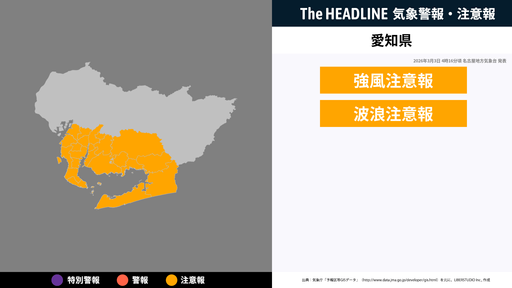 11月27日16時42分、名古屋地方気象台は、愛知県に発表されている警報・注意報の経過、予測、防災上の留意点などを解説するために発表していた気象情報を更新した。