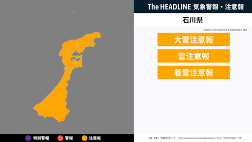 石川県、雪に関する気象情報が発表