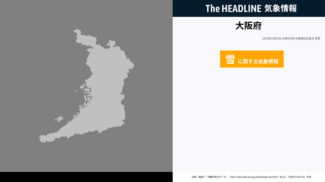12月1日16時4分、大阪管区気象台は、警報・注意報に先立ち注意・警戒を呼びかけるため大阪府に雪に関する気象情報を発表した。