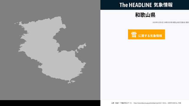12月2日10時35分、和歌山地方気象台は、和歌山県に発表されている警報・注意報の経過、予測、防災上の留意点などを解説するために雪に関する気象情報を発表した。