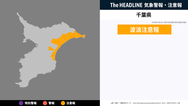12月2日11時15分、銚子地方気象台より千葉県に波浪注意報が発表された。