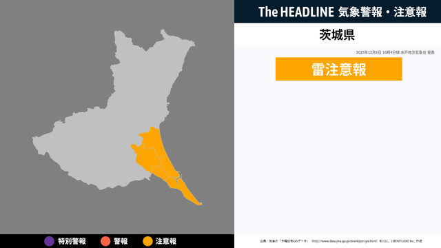 12月6日16時4分頃、茨城県に雷注意報が発表