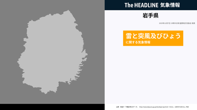 岩手県、雷と突風及びひょうに関する気象情報が発表