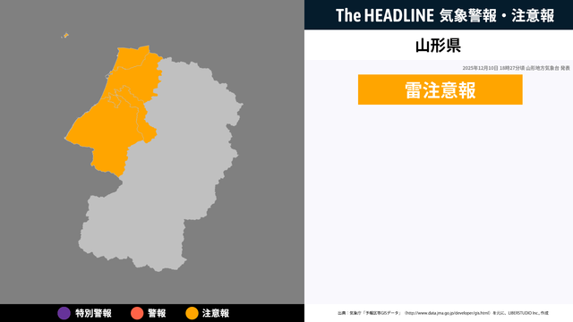 12月10日18時27分、山形地方気象台より山形県に雷注意報が発表された。