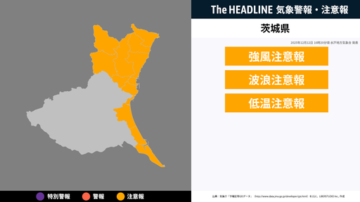 12月12日16時39分、水戸地方気象台は、茨城県に発表されている警報・注意報の経過、予測、防災上の留意点などを解説するために雪に関する気象情報を発表した。