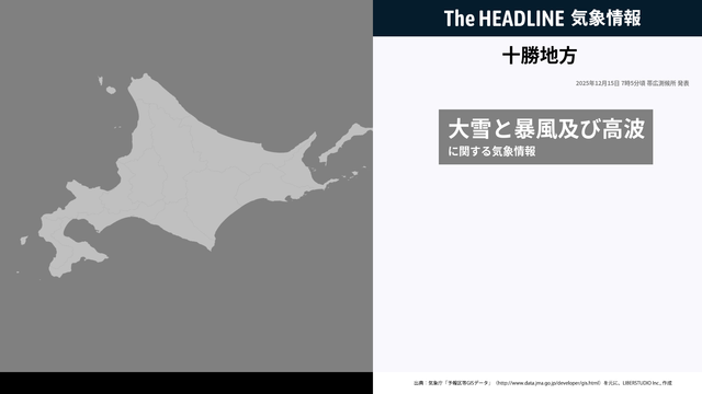 12月15日7時5分、帯広測候所は、十勝地方に発表されている警報・注意報の経過、予測、防災上の留意点などを解説するために発表していた気象情報を更新した。