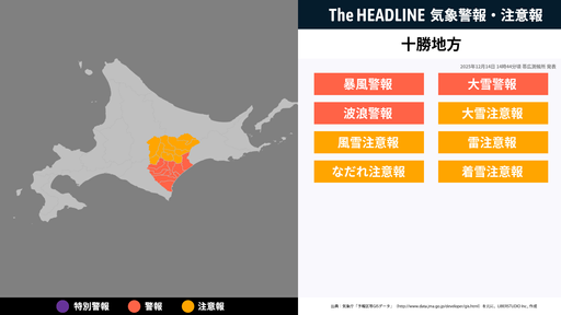 次の「石狩・空知・後志地方気象情報」は、14日夕方に発表する予定です。