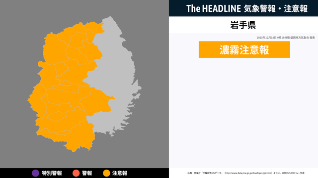 12月18日0時18分、盛岡地方気象台より岩手県に濃霧注意報が発表された。