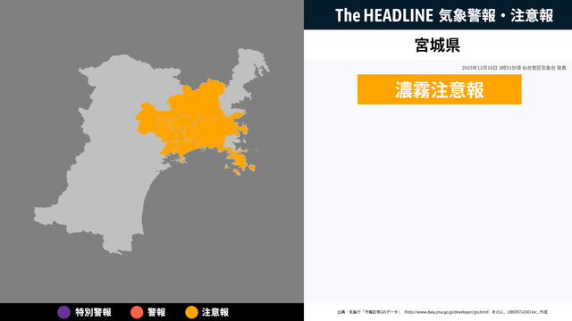 12月18日3時51分頃、宮城県に濃霧注意報が発表