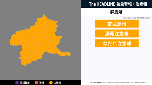 12月26日20時54分、前橋地方気象台は、群馬県に発表されている警報・注意報の経過、予測、防災上の留意点などを解説するために発表していた気象情報を更新した。