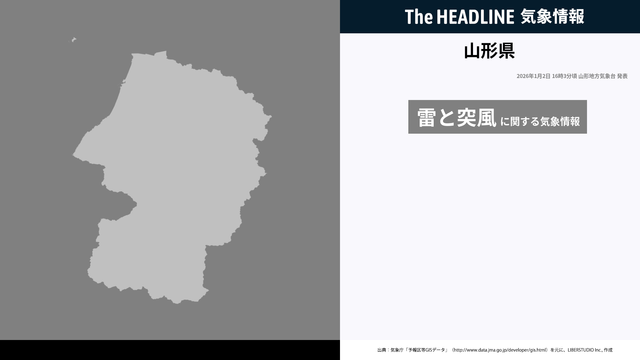 1月2日16時3分、山形地方気象台は、山形県に発表されている警報・注意報の経過、予測、防災上の留意点などを解説するために発表していた気象情報を更新した。