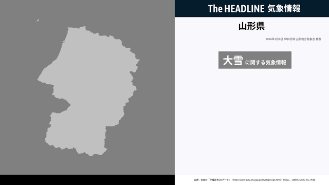 1月6日5時0分、山形地方気象台は、山形県に発表されている警報・注意報の経過、予測、防災上の留意点などを解説するために発表していた気象情報を更新した。