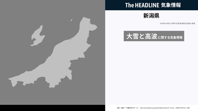 1月8日23時57分、新潟地方気象台は、新潟県に発表されている警報・注意報の経過、予測、防災上の留意点などを解説するために発表していた気象情報を更新した。