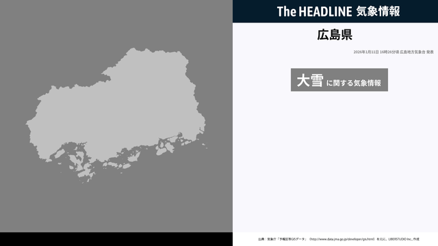 1月11日16時26分、広島地方気象台は、広島県に発表されている警報・注意報の経過、予測、防災上の留意点などを解説するために発表していた気象情報を更新した。