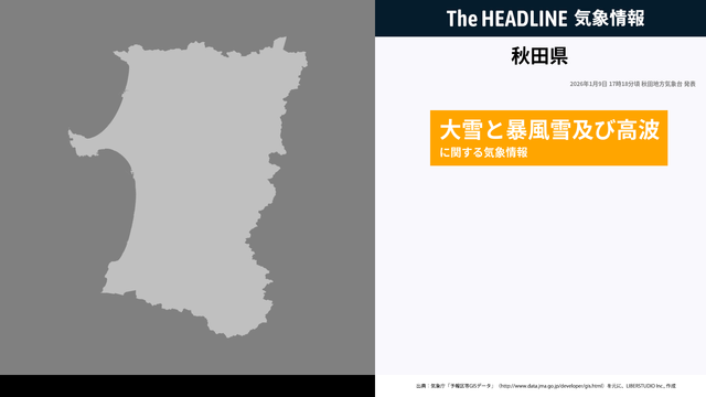 1月9日17時18分、秋田地方気象台は、秋田県に発表されている警報・注意報の経過、予測、防災上の留意点などを解説するために発表していた気象情報を更新した。