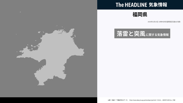 1月15日16時4分、福岡管区気象台は、福岡県に発表されている警報・注意報の経過、予測、防災上の留意点などを解説するために発表していた気象情報を更新した。