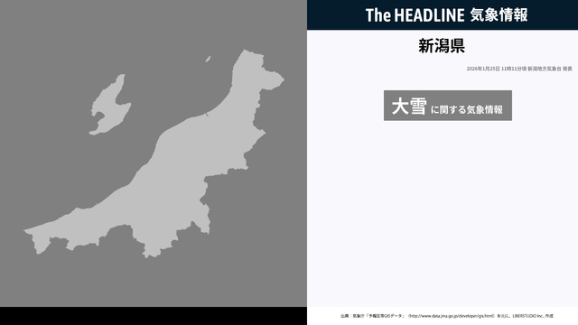 1月25日11時11分、新潟地方気象台は、新潟県に発表されている警報・注意報の経過、予測、防災上の留意点などを解説するために発表していた気象情報を更新した。