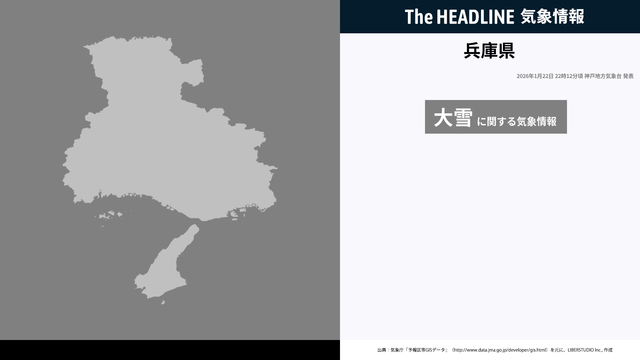 1月22日22時12分、神戸地方気象台は、兵庫県に発表されている警報・注意報の経過、予測、防災上の留意点などを解説するために発表していた気象情報を更新した。
