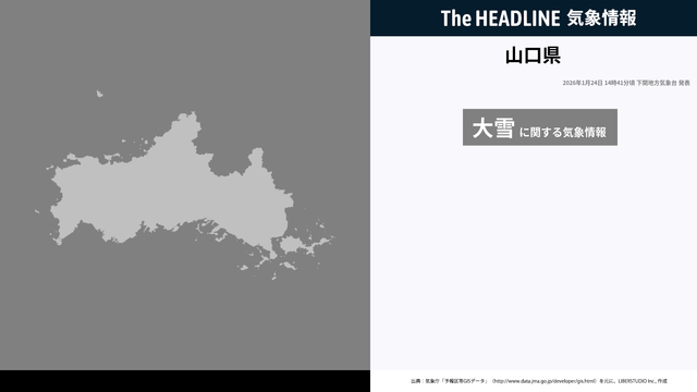 山口県、大雪に関する気象情報が更新