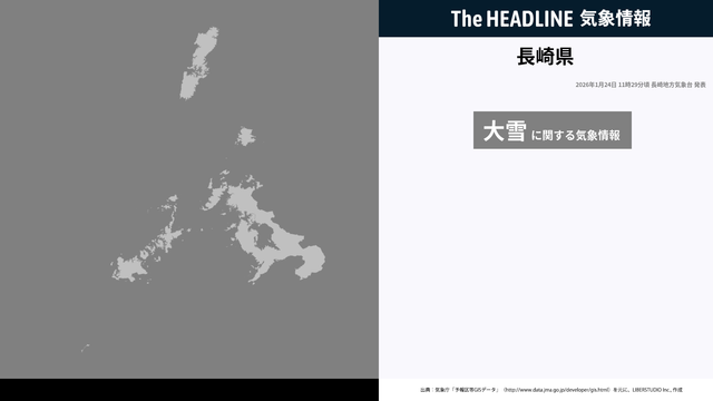 1月24日11時29分、長崎地方気象台は、長崎県に発表されている警報・注意報の経過、予測、防災上の留意点などを解説するために発表していた気象情報を更新した。