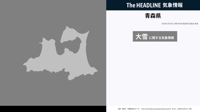 1月30日23時45分、青森地方気象台は、青森県に発表されている警報・注意報の経過、予測、防災上の留意点などを解説するために発表していた気象情報を更新した。