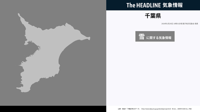 1月29日16時31分、銚子地方気象台は、千葉県に発表されている警報・注意報の経過、予測、防災上の留意点などを解説するために発表していた気象情報を更新した。