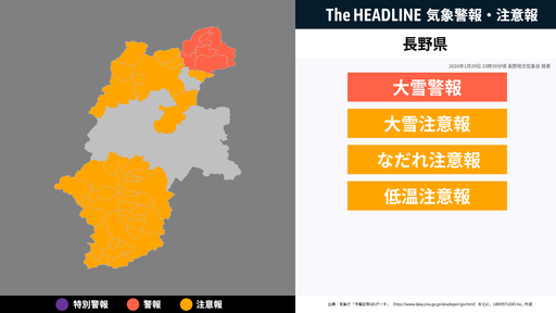1月30日0時9分、長野地方気象台は、長野県に発表されている警報・注意報の経過、予測、防災上の留意点などを解説するために大雪に関する気象情報を発表した。