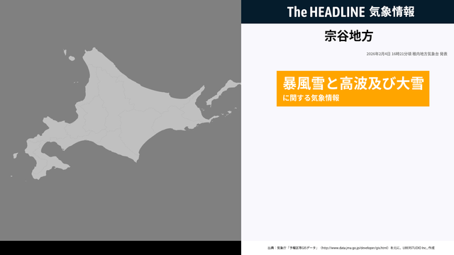 次の「宗谷地方気象情報」は、5日朝に発表する予定です。